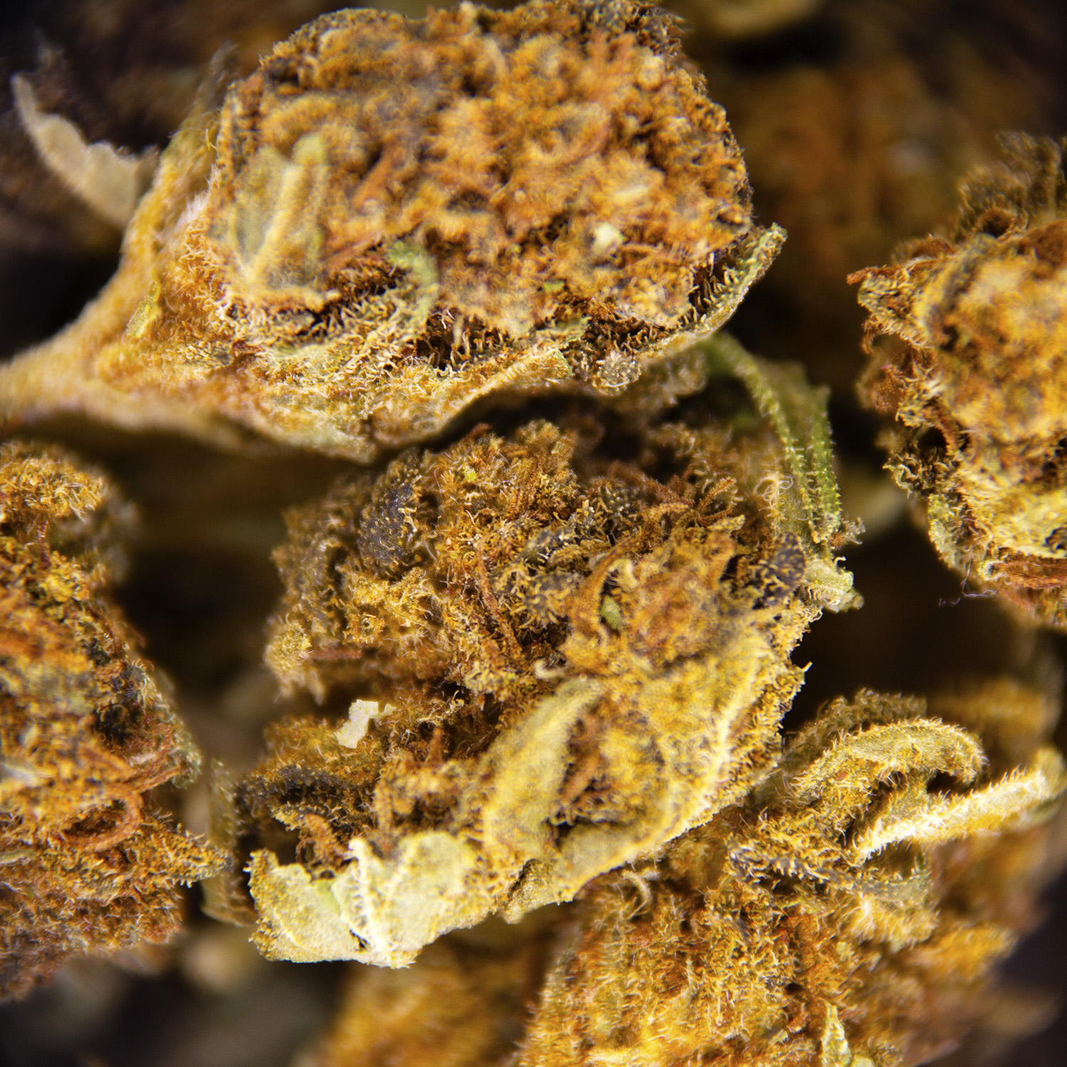 Combining the marijuana genetics of Northern California and Afghanistan, indica-dominant Alien Dawg (30:70- sativa/indica ratio) resulted from a crossbreed of Chemdawg and Alien Technology, a powerful Afghani indica that allegedly reached the United States by way of an American soldier. The effects are strongly uplifting, delivering a potent dose of euphoria. Use it late at night, as it induces a deeply sedating, sleepy feeling. At the same time, it spurs cerebral creativity and boosts mood. It’s great for insomnia, depression, and pain, while it also can be used to treat anxiety, headaches, and muscle spasms. Negative effects include dry mouth, dry eyes, and dizziness, though headaches and paranoia are also possible. Alien Dawg has a sharp, bitter flavor with sour notes of earth and pine. The smell is pungent and sour, with hits of pine. The strain has a bright green appearance with many flecks of orange. The THC levels are relatively high, topping out at 20%. CBD levels, on the other hand, are quite low, less than 1%. That means this isn’t the best strain for treating seizures or other conditions that are alleviated by CBD. Alien Dawg sells best on the West Coast and in Colorado and Montana.