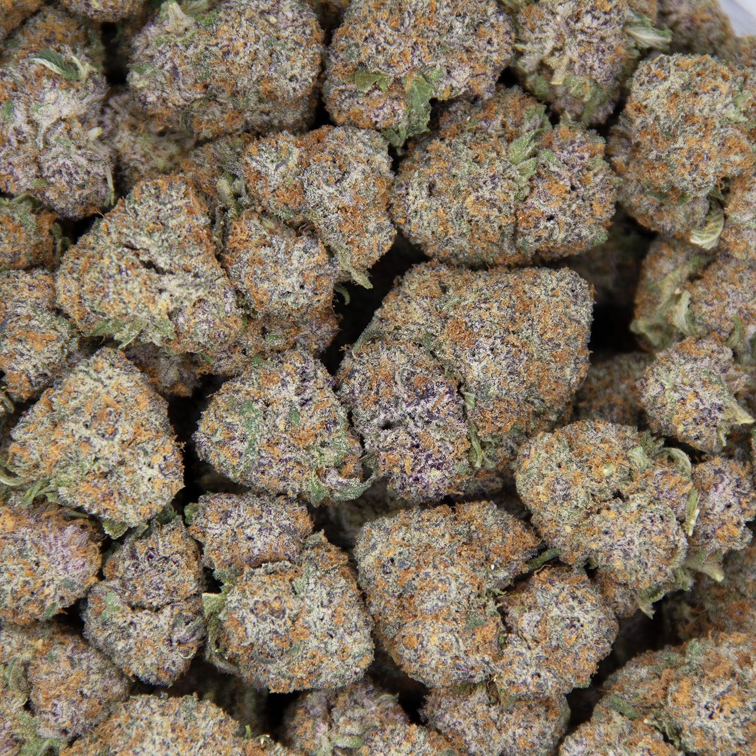 Modified Grapes is a slightly indica dominant hybrid strain (80% indica/20% sativa) created through crossing the potent GMO X Purple Punch strains. Known for its super fruity flavor and heavy-hitting high, Modified Grapes is a great choice for any hybrid lover who appreciates a slight indica lean in their bud. Like its name suggests, Modified Grapes has a super sweet and fruity grape flavor with a unique heavily pungent and dank spicy overtone. The aroma is very pungent and heavy with punches of rotting grapes and rich black pepper that will fill any room with its heavy stench. The Modified Grapes high hits you almost as soon as you exhale, filling you with a lifted sense of euphoria that instantly boosts your mood and leaves you flying. You’ll feel creative and sociable with an outgoing sense that has you easily carrying on conversations with those around you. This state does turn heady at times, leaving you unfocused and a little out of touch although pretty happy about it. Combined with its high 24-30% THC level, these effects give Modified Grapes an edge in treating those suffering from conditions such as asthma, insomnia, chronic pain, depression and chronic stress or anxiety.