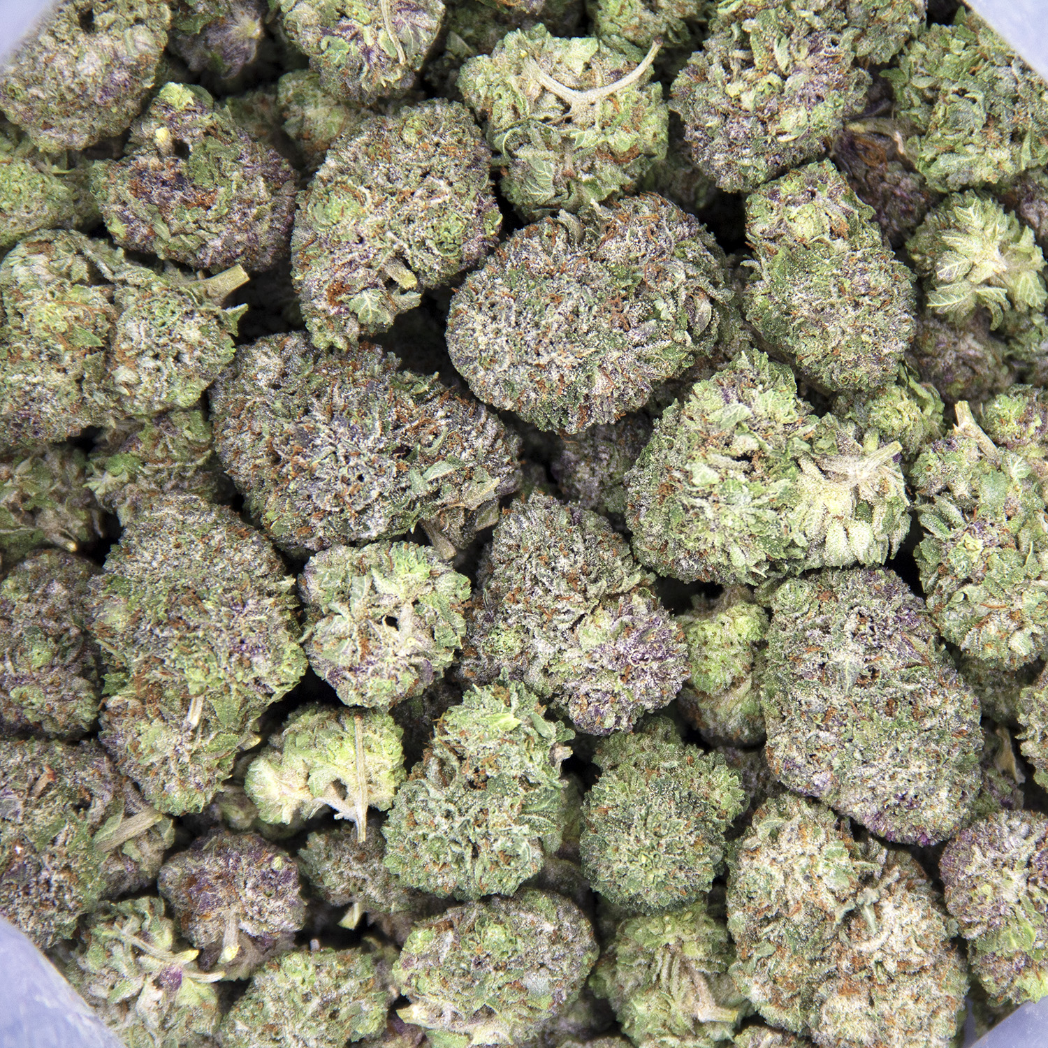Pink Tuna is a rare indica dominant hybrid strain (70% indica/30% sativa) created through crossing the classic Pink Kush X Tuna Kush strains. This bud lives up to the name, with classic indica effects that hit hard and fast, slamming into you with a hefty potency and a high 22% average THC level. The high starts with cerebral effects that suddenly crash through your mind, leaving you utterly euphoric and pretty unfocused at times with a tendency to drift away into space. As your mind settles, your body will start to drop off into a deeply relaxing tingly state, which lulls you into a heavy couch-lock. This effect quickly turns sedative, leaving you dozing off and on in a state of pure happiness and peace. Thanks to these effects and its high THC level, Pink Tuna is often chosen to treat conditions such as chronic pain, insomnia, depression, chronic stress, and muscle spasms or cramps. Pink Tuna buds have a sweet and sour fruity diesel flavor with a heavy pungent aroma to match. This bud has compact grape-shaped minty green nugs with thin orange hairs and a coating of frosty white crystal trichomes.
