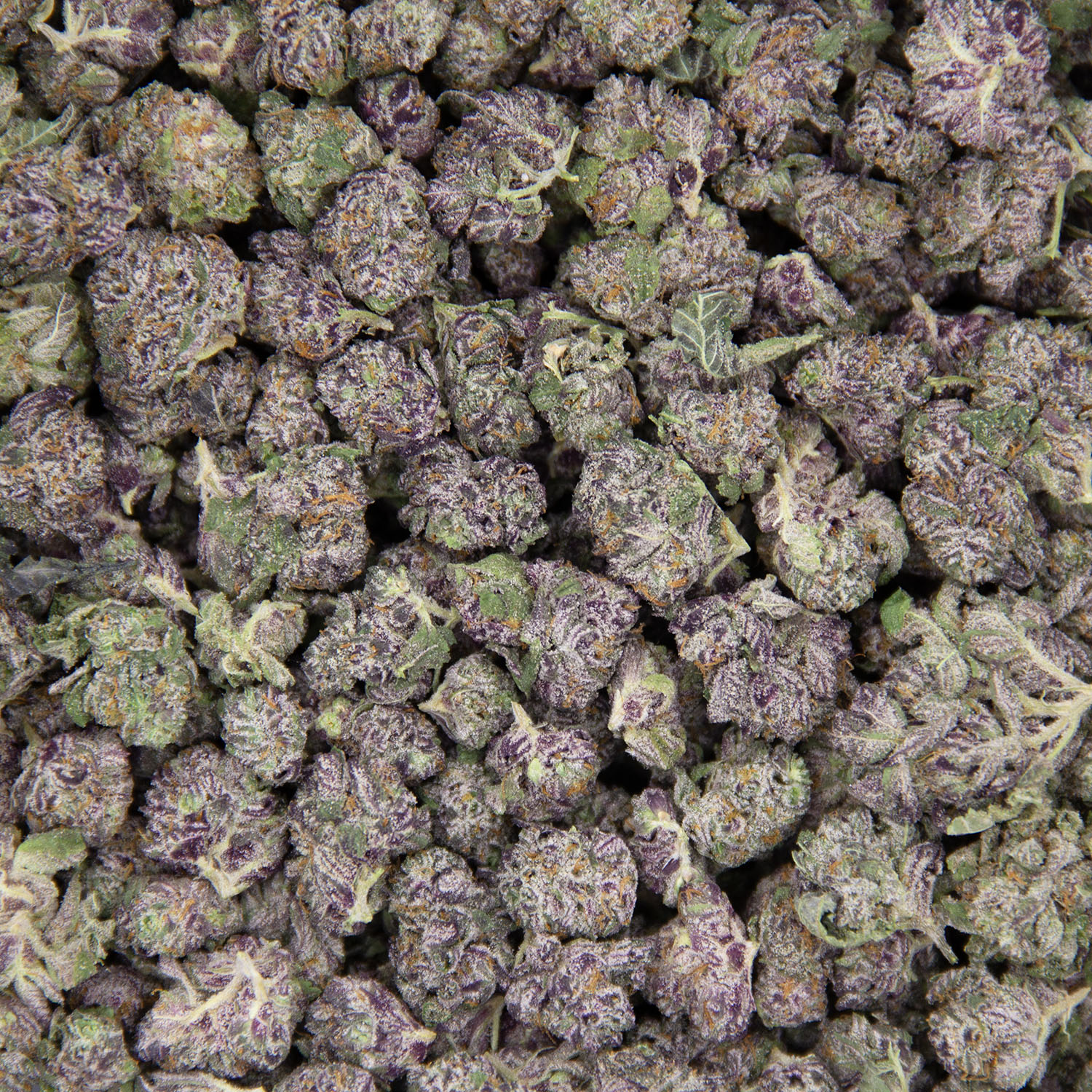 Purple Girl Scout Cookies, also known as “Purple GSC,” is a rare slightly indica dominant hybrid strain (60% indica/40% sativa) created through crossing the classic Purple Kush X Blue Cookies strains. Even though it’s hard to find on your average market, this bud is sought after for its super relaxing high and gorgeous appearance that will leave you staring. Purple Girl Scout Cookies buds have airy grape-shaped olive green nugs with rich purple undertones, thick red orange hairs, and a coating of tiny frosty white crystal trichomes. As you break apart each super sticky little nugget, fresh aromas of spicy dank berries and earthy pepper are released. The flavor follows the same profile, with a spicy berry overtone that’s accented by dank earth and herbs upon exhale. The Purple Girl Scout Cookies is one best suited for a lazy day at home, with super relaxing effects that will have you kicking back in no time at all. You’ll feel a light cerebral lift at the onset of the high that gives you a boost of euphoria, immediately erasing any negative or racing thoughts. As your mind lifts, you’ll feel a calming state wash over your body, leaving you feeling totally at ease. With these effects and its high 22-29% average THC level, Purple Girl Scout Cookies is said to be perfect for treating chronic pain, appetite loss or nausea, depression, and chronic stress.